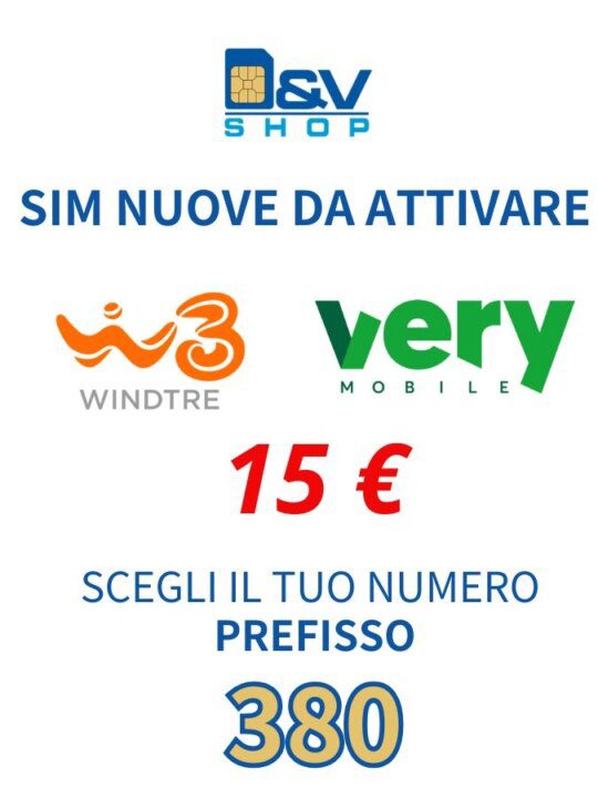 SIM Nuove Da Attivare Wind3 e Very Mobile 380 da 15 €