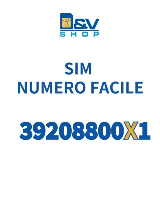 Ho acquistato una SIM da D&V Shop e sono rimasto molto soddisfatto. Hanno un’ampia scelta di numeri facili e particolari. L’acquisto è stato veloce e molto semplice e la spedizione rapida.